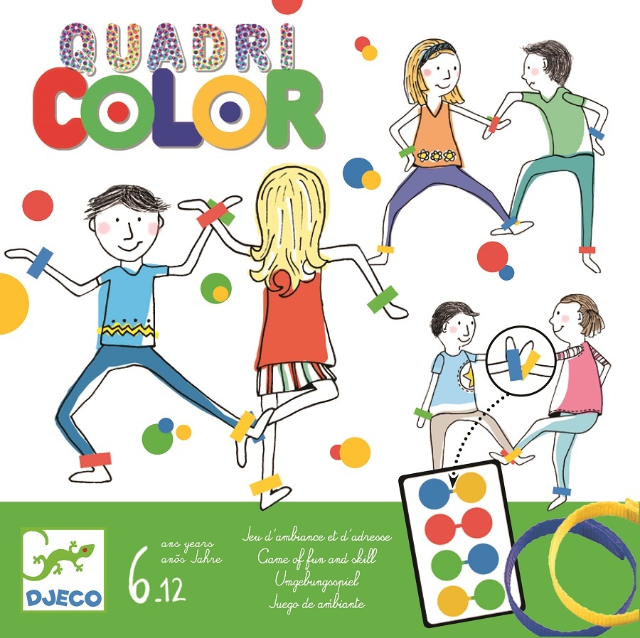 Quadri color je společenská akční hra pro dva týmy. Týmy si dají různě barevné náramky na zápěstí a kotníky. V průběhu hry pak musí tvořit, co nejrychleji, dané kombinace zobrazené na kartě.Obsah: 24 karet, 24 barevných náramků (6 žlutých, 6 modrých, 6 červených a 6 zelených).Věk: od 6 letPočet hráčů: 4-6 hráčůRozměry balení: 21,5x21,5x3cm