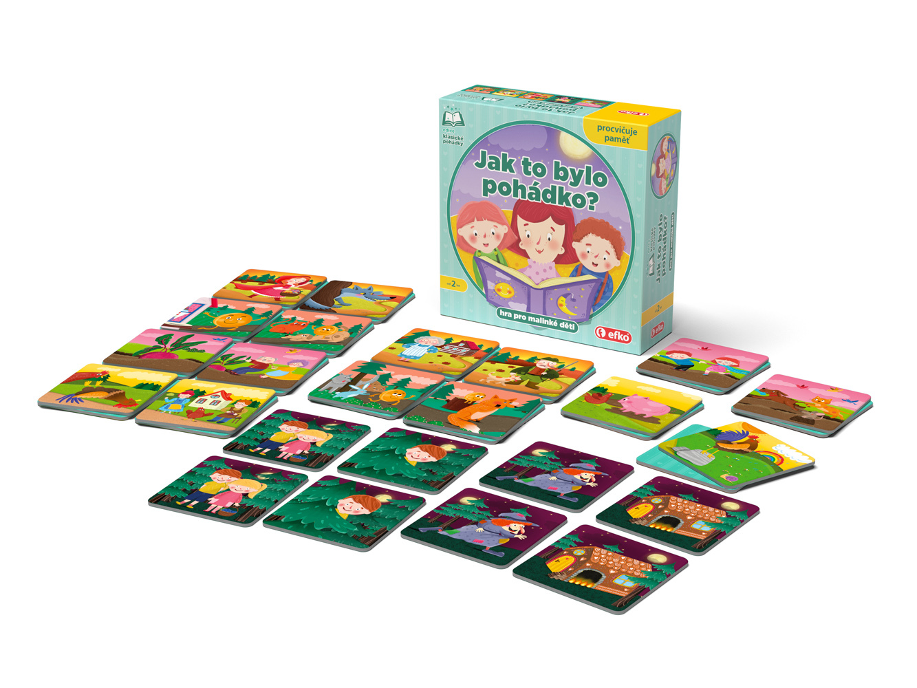 Na 40 pevných, velkých kartičkách jsou vyobrazeny scény z pěti různých pohádek. Děti mají za úkol poznat pohádku z jednotlivých obrázků a najít všechny kartičky, které k ní patří. Tento způsob hry rozvíjí nejen pozornost a soustředění, ale i schopnost logického uspořádání a vyprávění příběhů. Milé ilustrace od Lucie Charvátové dělají každý obrázek atraktivním a přitažlivým pro nejmenší.