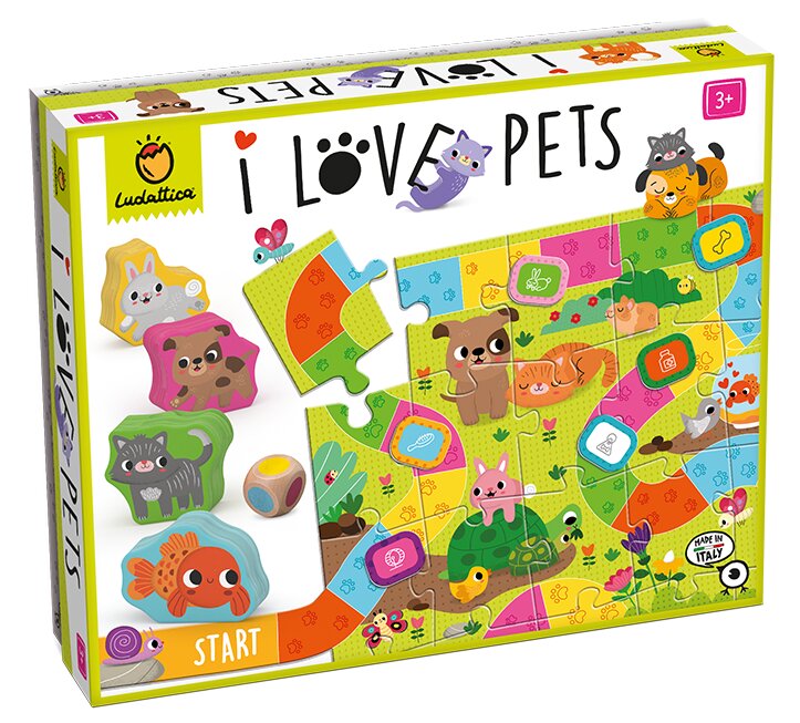 Ideální první barevná společenská hra pro děti! Společenská hra pro nejmenší - Ludattica - Domácí mazlíčci je vhodná pro děti od 3 let. Jako figurky dětem slouží velká dřevěná zvířátka. Hráči sbírají barvičky, které určuje kostka, každá barva představuje činnost, kterou je potřeba vykonat, když se staráme o domácího mazlíčka - nakrmit, pohrát se, nechat vyspinkat, umýt a vzít k veterináři. Vítězí zvířátko, o které se majitel postará pořádně jako první.