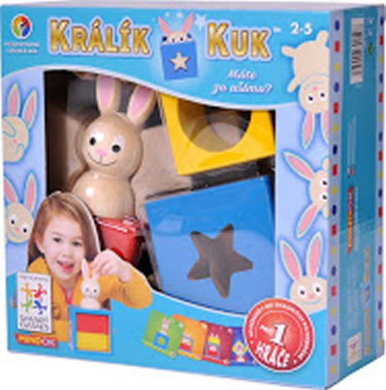 Hlavolamová hra pro 1 hráče z řady SMART games. Králík Kuk je logická hra pro nejmenší děti. V krabici najdete 3 velké dřevěné díly krabice, roztomilého králíka a 60 zajímavých rébusů. Stojí králík na červeném, na žlutém nebo na modrém dílu? A dívá se skrz kruh, nebo skrz hvězdičku? S králíkem Kukem děti objevují úžasný svět třírozměrného prostoru.