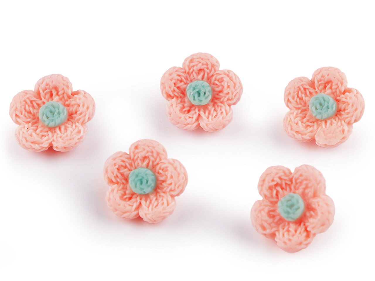 Knoflík 3D květ imitace háčkování velikost 28" - 25 ks - 6 pudrovo-lososová