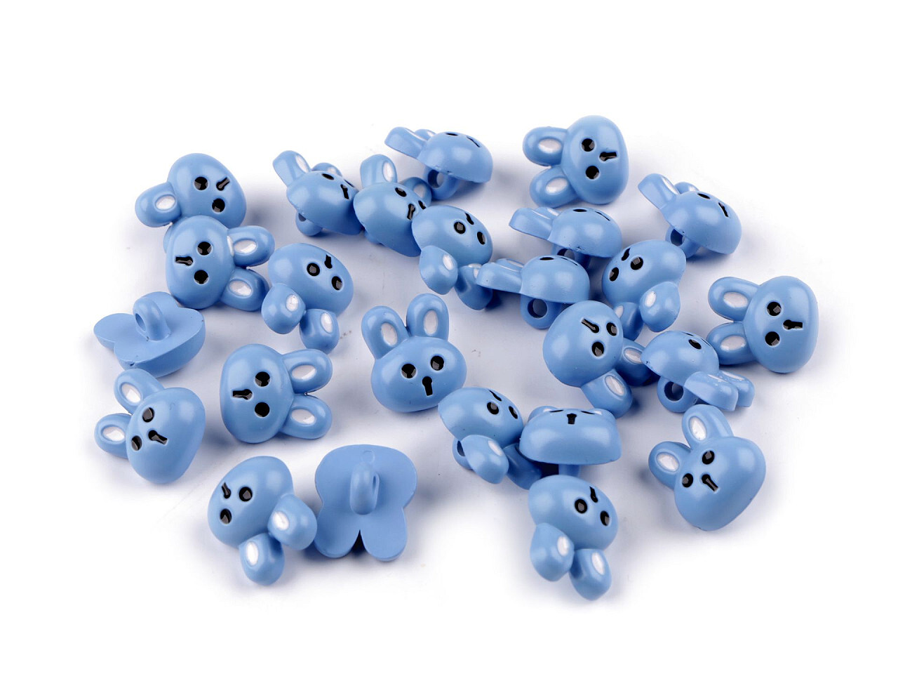 Knoflík dětský zajíc, medvídek, panda - 25 ks - 4 modrá jemná zajíc