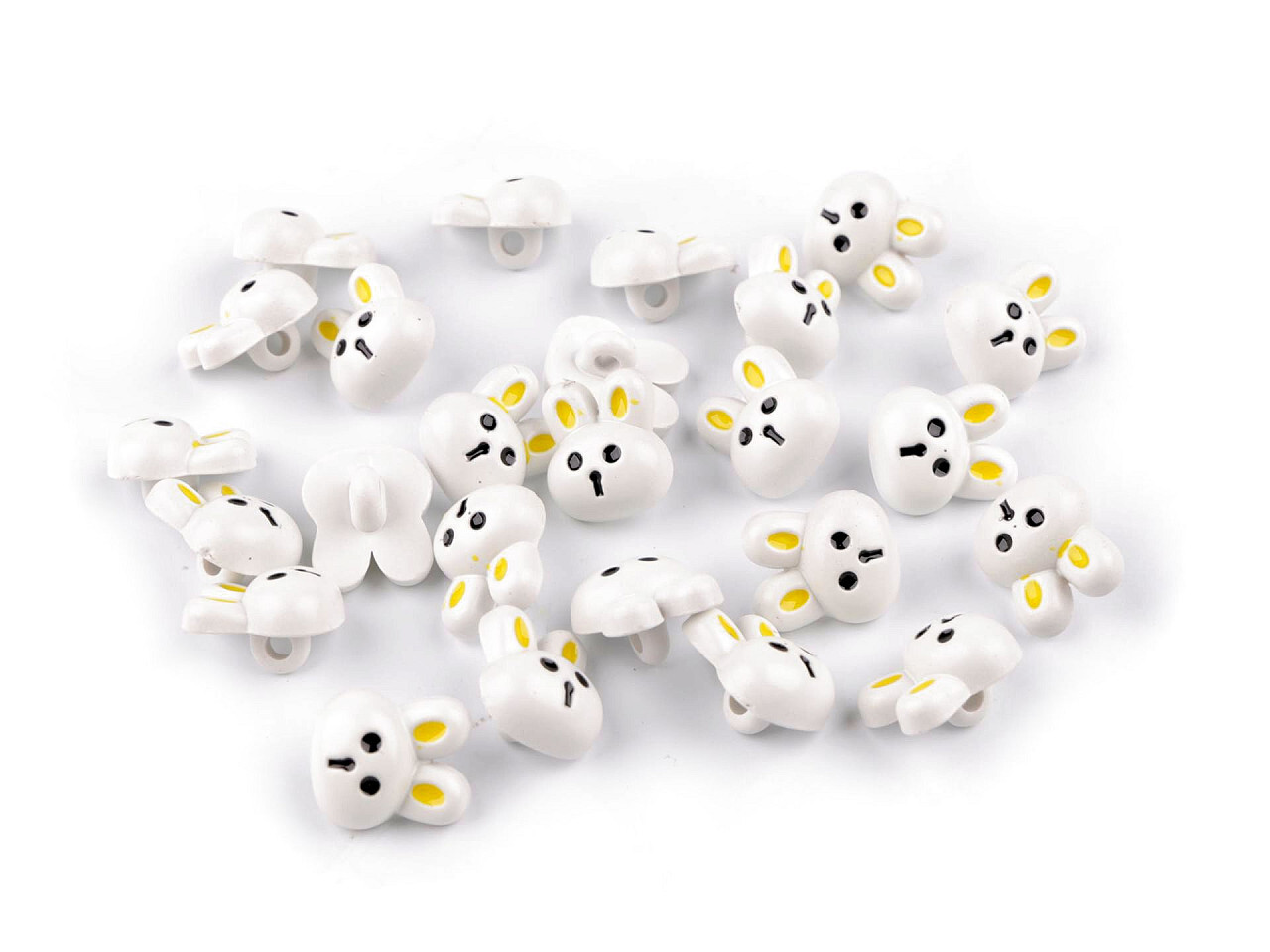 Knoflík dětský zajíc, medvídek, panda - 25 ks - 1 bílá zajíc