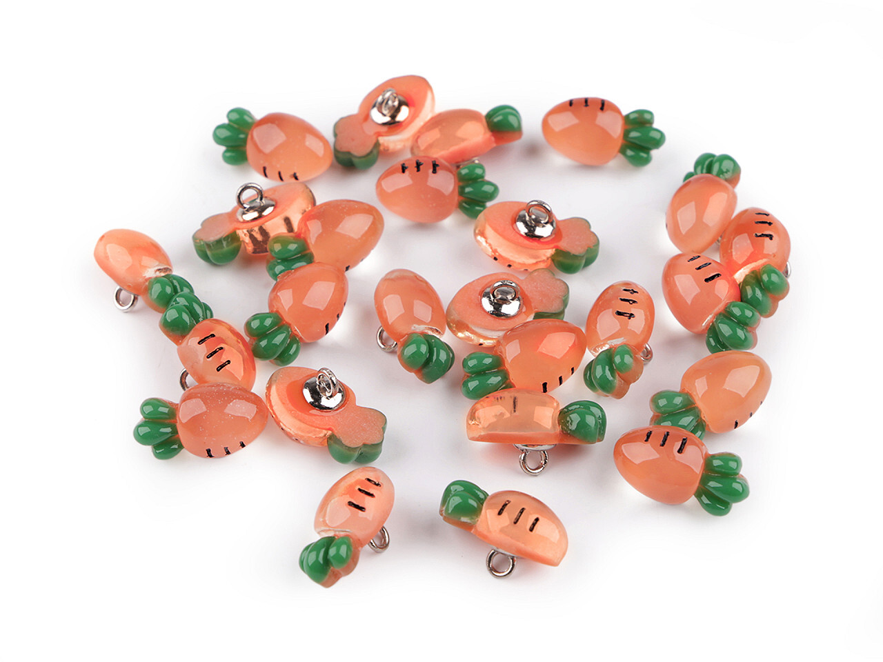 Knoflík 3D mrkev velikost 26" - 25 ks - 2 oranžová mrkvová