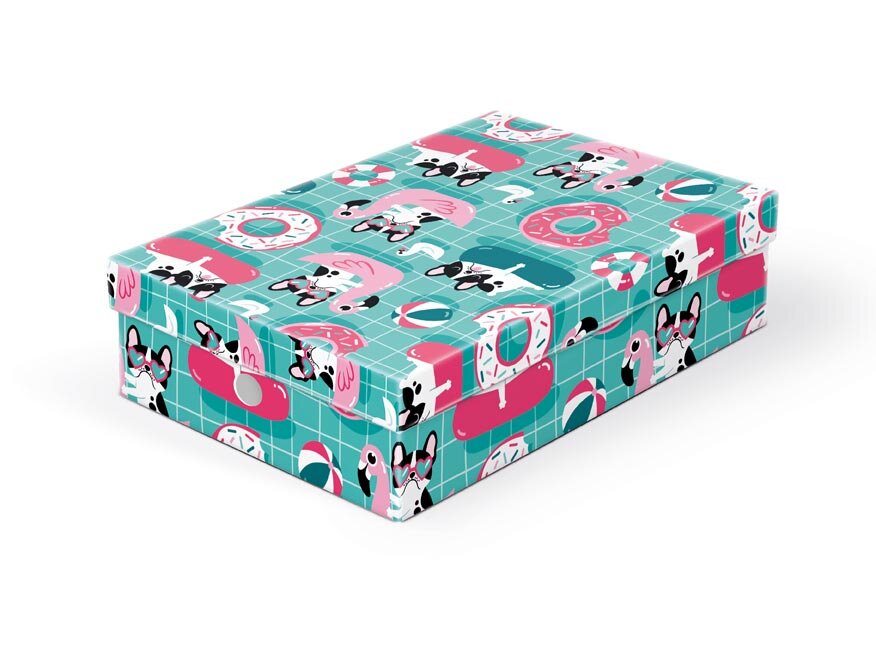 - Veselý design: Roztomilý motiv buldočka a plameňáka dělá krabici atraktivní pro děti.