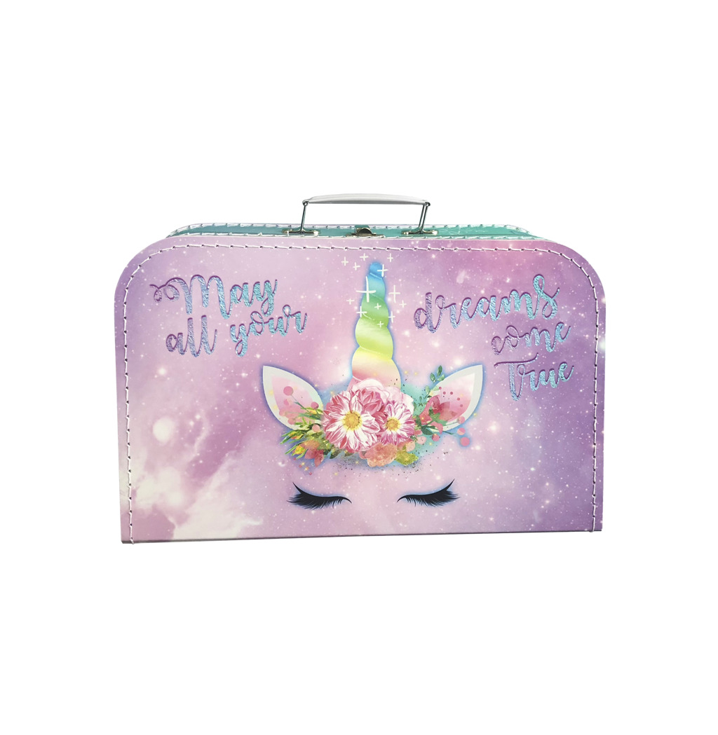 Kazeto kufřík s jednorožcem je jistě velmi populární, díky tomuto motivu. Kufry jsou vyráběny v České republice s dlouholetou tradicí. Sama jsem takový kufřík měla jako malá a mé děti je mají také. Vlastně je mají ve škole povinné na výtvarné potřeby a celá třída je má pěkně narovnané ve skříni. Doma kufříky slouží na autíčka, bárbíny a drobnosti. Je to i pěkný doplněk v pokojíčku, proti plastovým krabicím.