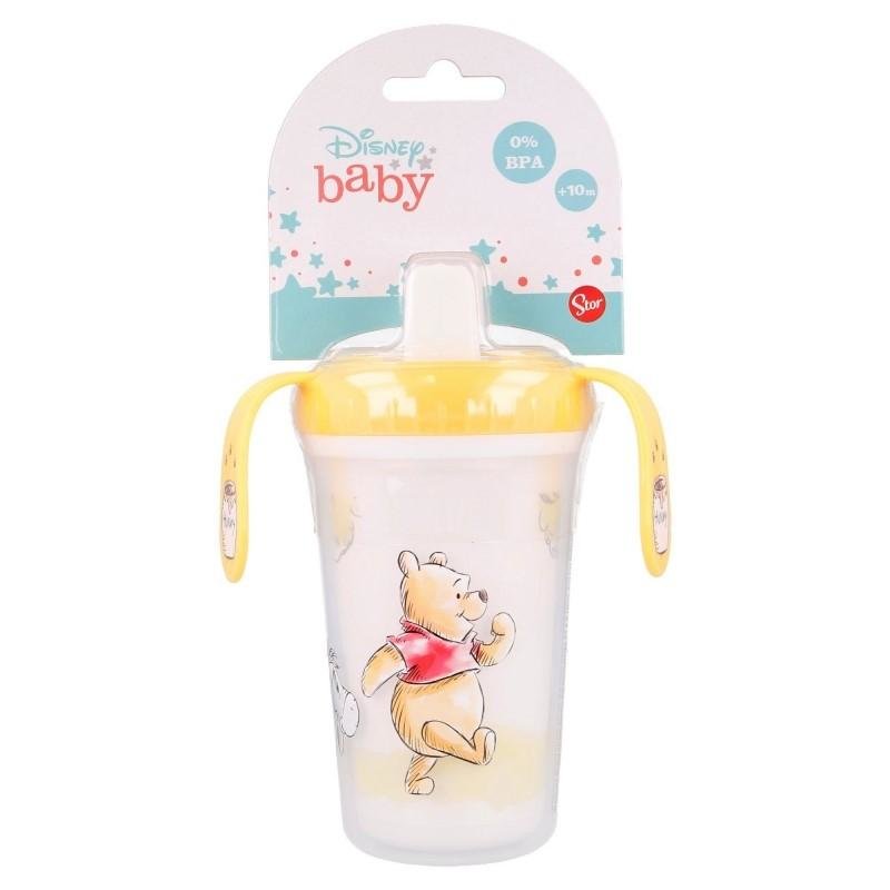 Praktický trénovací hrneček s motivem Medvídek Pů.Ideální pro pomoc malým dětem při přechodu na hrnečky pro dospělé. Dvě snadno uchopitelné rukojeti, s výklopným pítkem.Pro děti +10 měs.Objem: 320 ml.Rozměry: 12 x 12,1 x 8,3 cm.Materiál: plast.Bez BPA, zdravotně nezávadný.Výrobce: Stor.