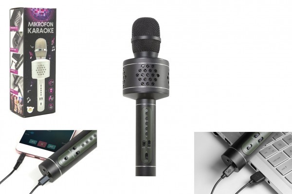 Mikrofon Karaoke Bluetooth černý na baterie s USB kabelem v krabici 10x28x8,5cm