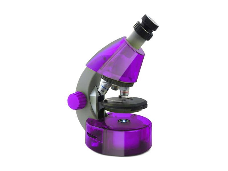 Jak vypadá malý brouček při vysokém zvětšení? Jaká je vnitřní struktura rostlin? Co žije v kapce vody z rybníka? S mikroskopem Levenhuk LabZZ M101 Amethyst\\Ametyst budou děti moci najít odpovědi na tyto a řadu dalších otázek, které zaměstnávají jejich mladé a zvídavé mysli. Sada obsahuje vše, co potřebujete pro své první samostatné experimenty - připravené mikroskopické preparáty, speciální nástroje pro práci s mikroskopem a informativní uživatelskou příručku s popisy řady zajímavých pokusů. Jeho zářivě průsvitná ametystová barva dává mikroskopu vyniknout - může se stát skvělým dárkem pro dítě nebo studenta. Kvalitní optika: Mikroskop je navržen zejména pro děti, ale z pohledu optického výkonu není tento model o nic horší než řada mikroskopů „pro dospělé“. Je vybaven třemi objektivy. Při nastavení zvětšení nemusíte přerušovat svou práci - pootočením revolverové hlavice rychle vyměníte objektivy. Jedinečným prvkem tohoto modelu je jeho posuvný dvoupolohový okulár, který nahrazuje dva okuláry se zvětšením 10x a 16x - a skutečně snadno se používá. Vaše dítě nebude muset vyměňovat okuláry, takže je neztratí. Tři objektivy a tento okulár vám umožní dosáhnout následujících hodnot zvětšení: 40x, 64x, 100x, 160x, 400x a 640x! Studium mikroskopických vzorků: Chystáte-li se pozorovat křídlo mouchy nebo buňky cibule, je třeba na pracovní stolek položit tenký transparentní vzorek. Praktické svorky jej bezpečně přidrží na místě, takže jej při náhodném pohybu neztratíte ze zorného pole. Světlo vydávané LED diodami (umístěnými pod stolkem) prochází preparátem a vytváří zvětšený obraz. Regulovatelný jas osvětlení je velmi praktická funkce - můžete jej zesílit u preparátů o větší tloušťce, které jsou méně transparentní, a opačně zeslabit při pozorování velmi tenkých a transparentních řezů. Pohodlná a bezpečná konstrukce: Tělo je vyrobeno z odolného plastu, takže mikroskop je lehký, ale přesto odolný a spolehlivý. Aby se předešlo nepohodlí při pozorování, má hlava mikroskopu sklon 45°. Mikroskop se napájí z baterií - díky tomu je jeho používání bezpečnější a přístroj je přenosnější. Zajímavé pokusy: Sada obsahuje experimentální soupravu, v níž je vše potřebné k provádění vzrušujících pokusů v klidu domova! Informativní uživatelská příručka vašemu dítěti sdělí, jak mikroskop funguje, co s ním může dělat, jak si vyrobí vlastní preparáty, naučí jej krmit doma mikroskopické korýše a řadu dalších zajímavostí!