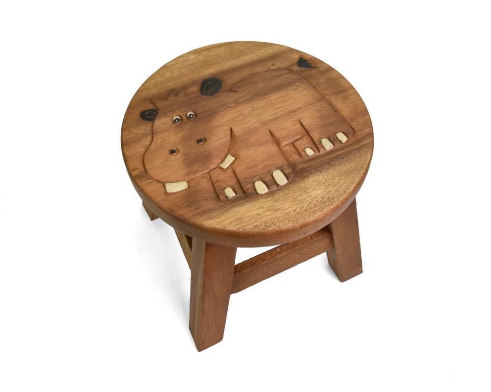 Stolička dřevěná dekor hroch