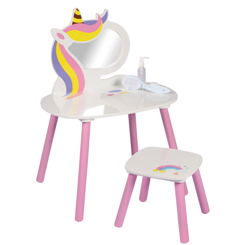 DOCHTMANN Toaletní stolek pro děti se stoličkou, Jednorožec 60x45x80cm