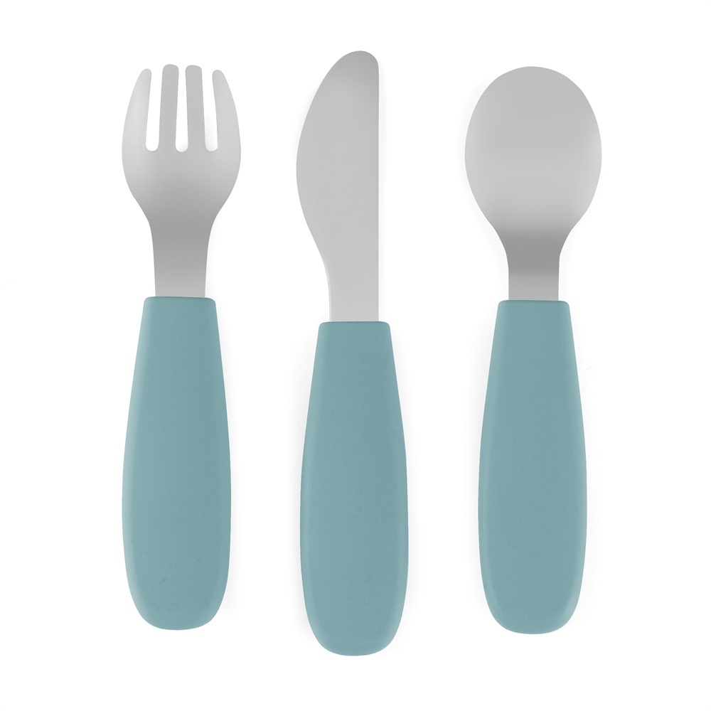 - Kompletní sada - 3 kusy: lžička, vidlička a nůž bezpečný pro děti