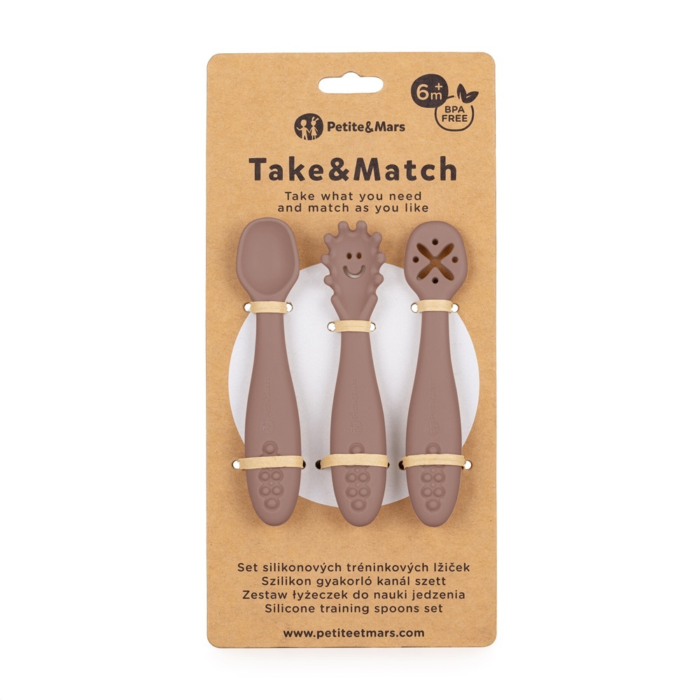PETITE&MARS Set 3 ks silikonových tréninkových lžiček Take&Match Velvet Latte 6m+