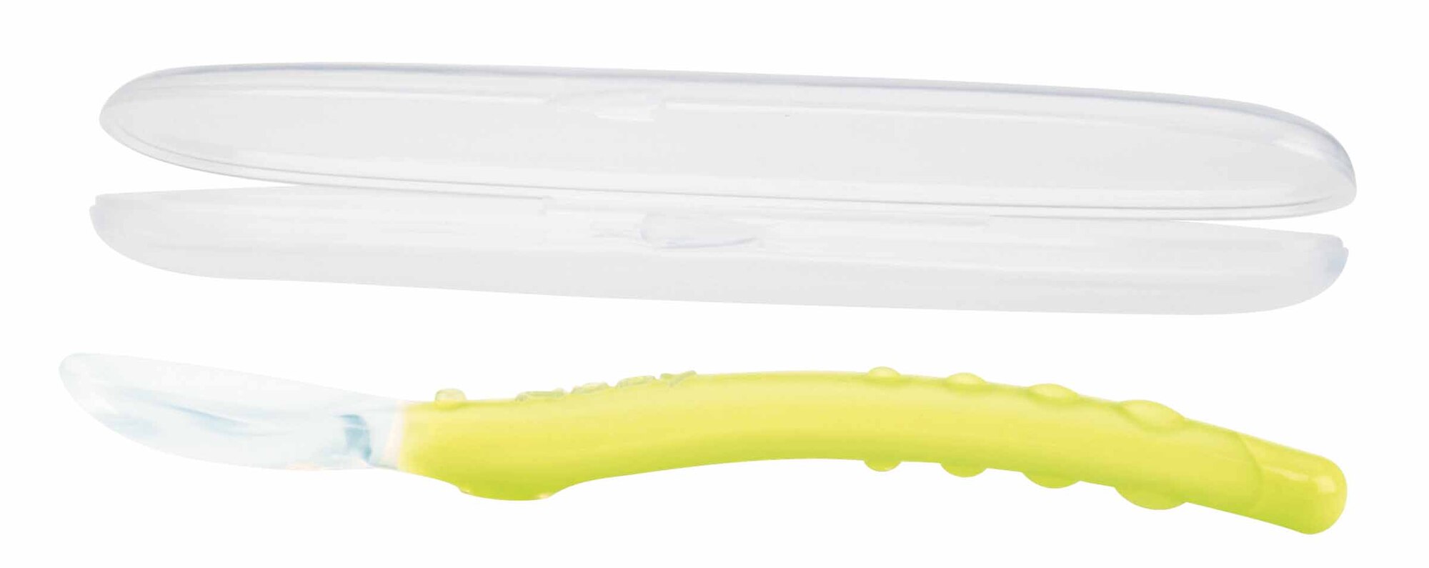 NUBY Lžička silikonová s pouzdrem 3 m+, žlutozelená