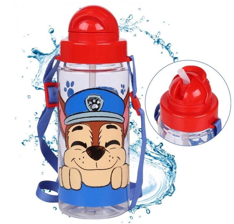 Junior láhev na pití s motivem Tlapková patrola.S výsuvným brčkem.Rozměr: 19 x 6,5 x 6,5 cm.Objem: 500 ml.Materiál: tritan, vysoce odolný materiál.S popruhem na zavěšení kolem krku.Bez BPA, zdravotně nezávadný.Výrobce: Euroswan.