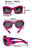 yto dětské sluneční brýle jsou speciálně určené pro děti ve věku 0 - 4+ let a nabízí 100% ochranu proti UV záření (UVA a UVB) 400 nanometrů. yto dětské sluneční brýle jsou speciálně určené pro děti ve věku 0 - 4+ let a nabízí 100% ochranu proti UV záření (UVA a UVB) 400 nanometrů.Rámeček a čočky jsou vyrobeny z vysoce kvalitního polykarbonátu a jsou také odolné proti nárazu a rozbití. Rameček a nožky jsou vyrobeny z flexibilního odlehčeného materiálu s nastavitelným a odepínatelným páskem. Pokud vaše dítě potřebuje čočky nebo brýle mohou být těmito nahrazeny. Sluneční brýle, pokud nejsou nošeny, mohou být uloženy v průhledném pouzdru s poutkem na zápěstí. Pouzdro je součástí výrobku.Charakteristika dětských brýlí: 100% ochranu proti UV záření (UVA a UVB) Vysoká kvalita polykarbonátových skel (proti nárazům a pádu) Komfortní FLEX rámeček, nastavitelný a odnímatelný pásek Pohodlné (určeny především pro miminka a děti), voděodolné, nerezové Optiku je možné vyměnit za sluneční brýle s čočkami na předpis) Minimalizují vystavení perifernímu osvětleníTechnická specifikace: UV 400 CPSIA FDA Schválené registrační číslo 3003984416 CE Certifikace US Patenty D485290, D485291, D485292, D485293 AU Patenty 158396, 2004201328