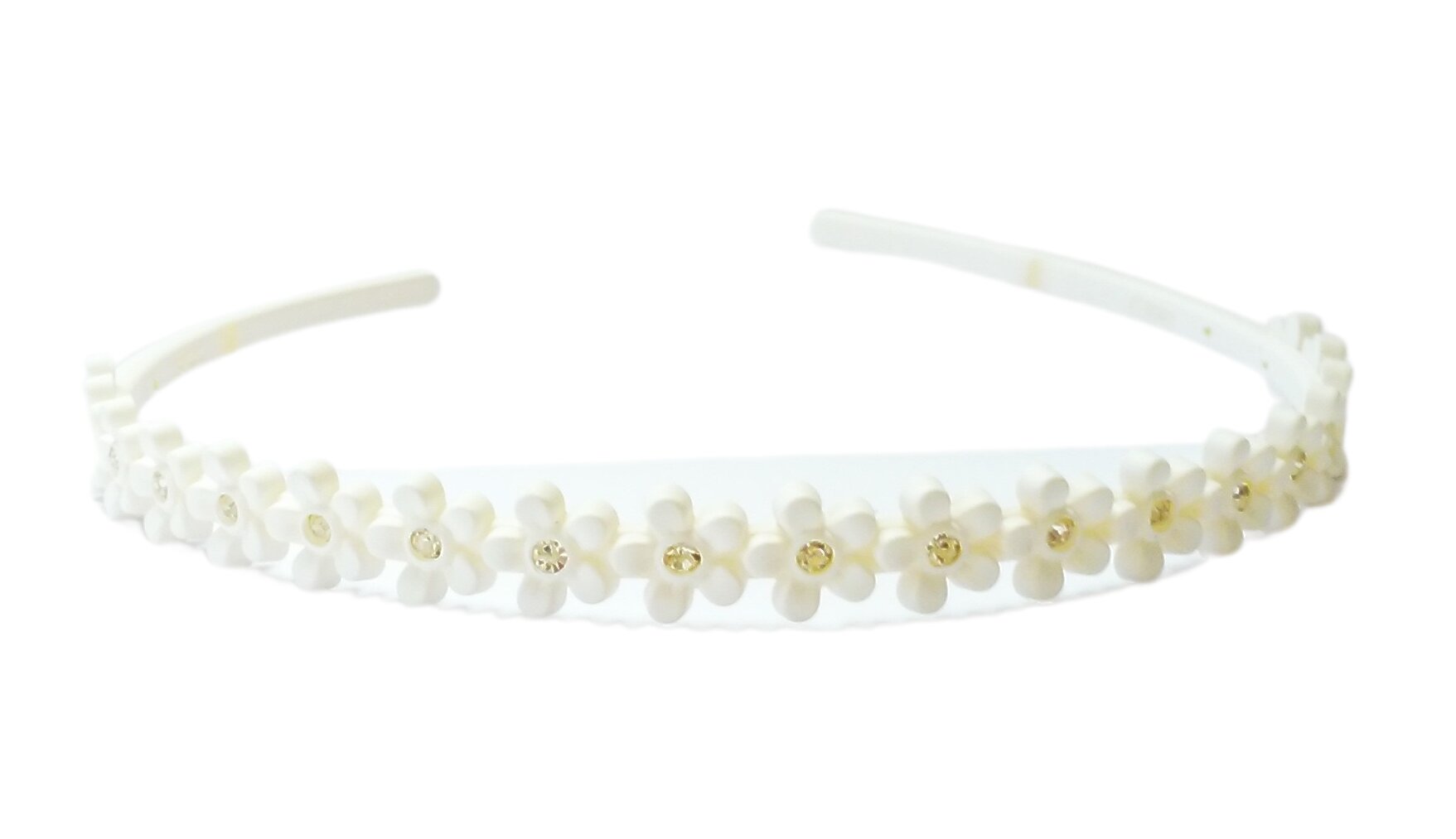 Dívčí čelenka s kytičkami a kamínky, bílá