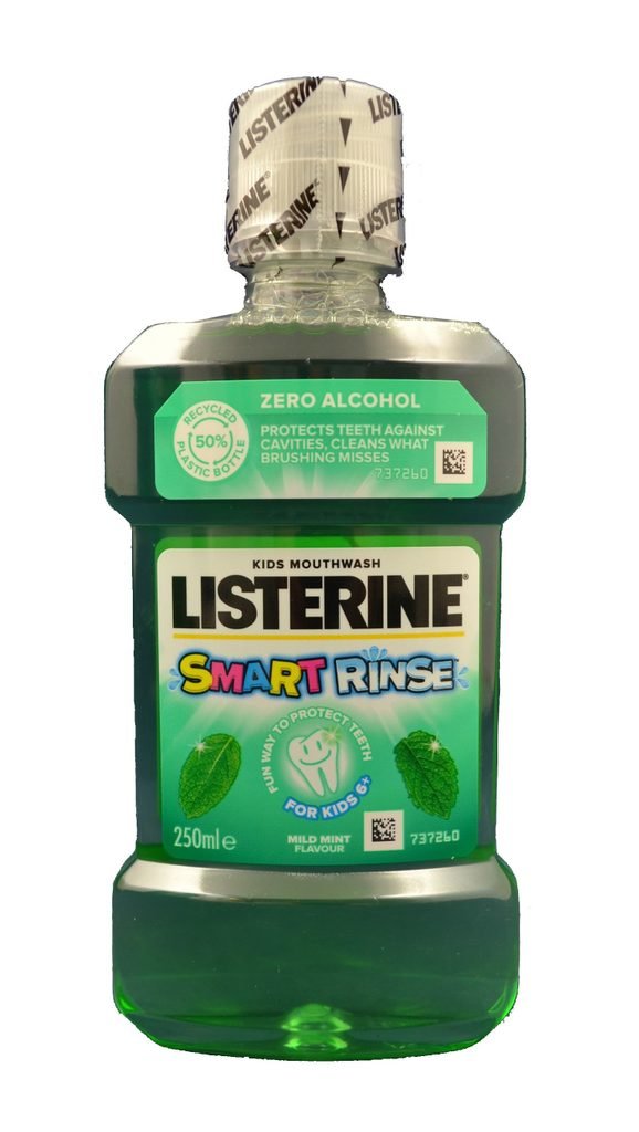 Dětská ústní voda s mátovou příchutí. Ústní voda LISTERINE® SMART RINSE™ je speciálně vyvinuta pro děti od 6 do 12 let ke každodennímu používání. Přitahuje a zbarvuje částečky zbytků jídla a zubního povlaku, které nebyly odstraněny pomocí zubního kartáčku. V případě, že se po výplachu trvajícím 60 vteřin objeví v umyvadle viditelné shluky, znamená to, že je třeba mechanické odstraňování zubního povlaku opakovat nebo příště věnovat tomuto procesu větší pozornost. Čištění zubů je proto zábavné a motivující. D