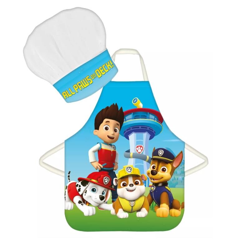 Dětská zástěra TLAPKOVÁ PATROLA set s čepicí před věží