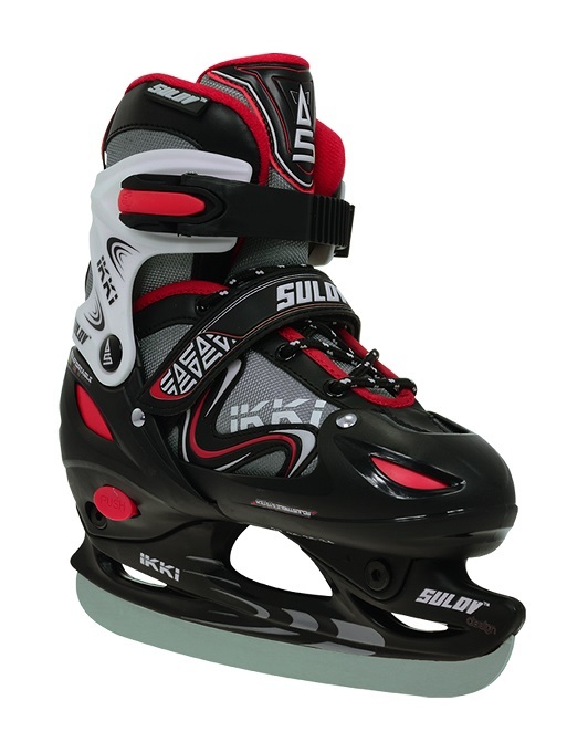 Chlapecké nastavitelné zimní brusle. Rychleschnoucí prodyšná výstelka pro pohodlné nošení. Brusli lze jednoduše nastavit dle potřeby na 4 velikosti pouhým stisknutím tlačítka na boku v patě brusle.