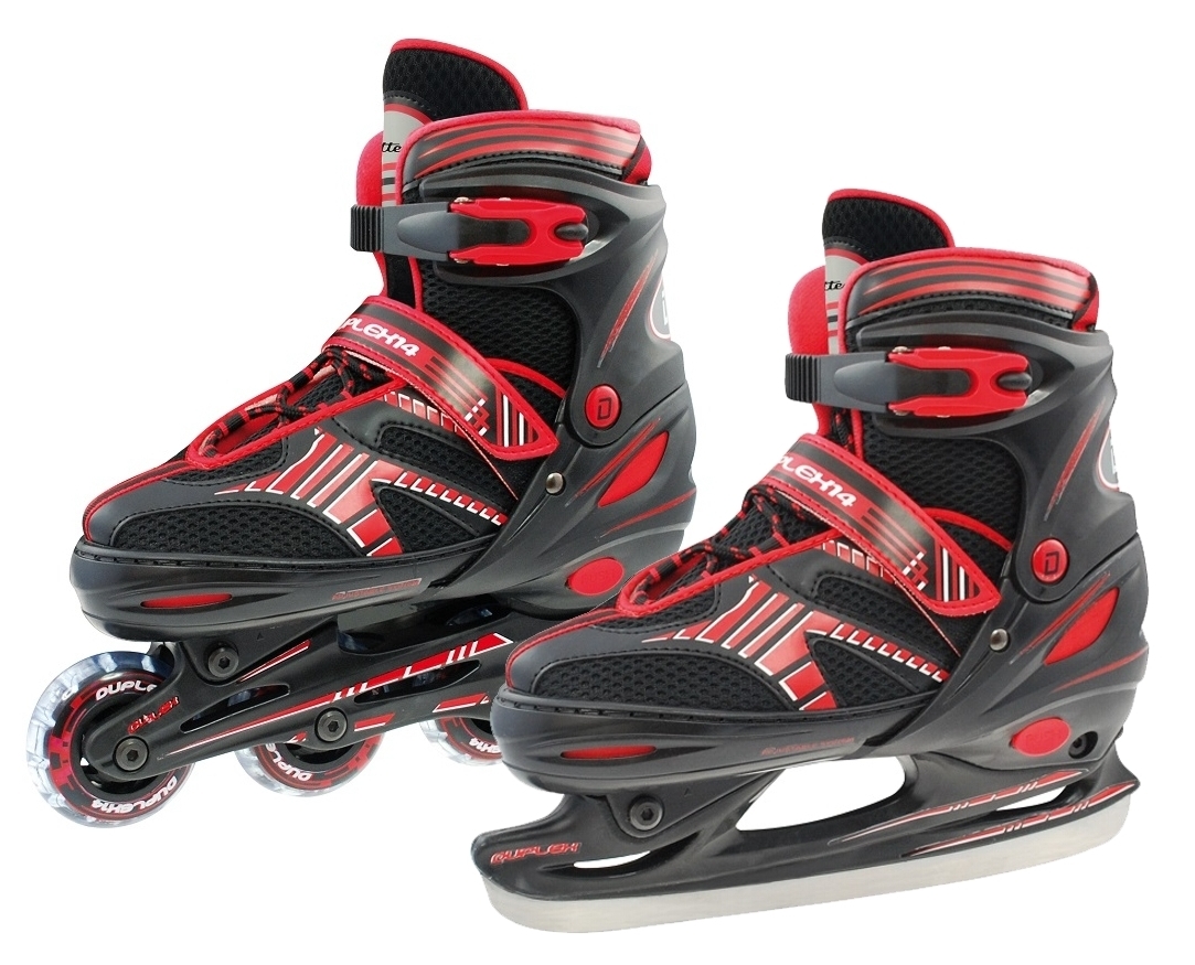 Nastavitelná brusle s vyměnitelným podvozkem na lední nebo in-line bruslení.