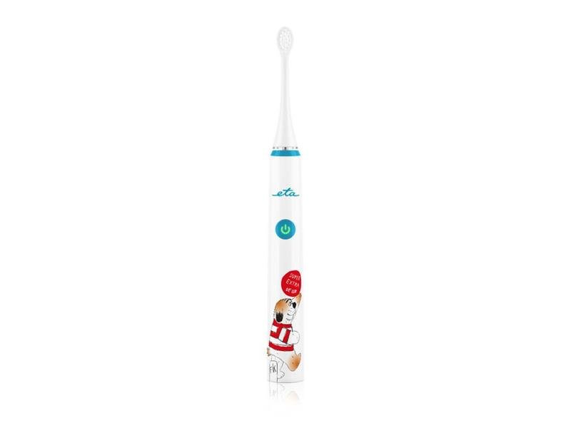 Sonický zubní kartáček pro děti. ETA Sonetic Kids 0706 90000, nabíjecí nabízí až 42 000 pohybů/min, 4 režimy čištění, časovač na 2 minuty a dobu provozu až 80 minut na jedno nabití. Součástí balení jsou 2 hlavice a USB kabel.