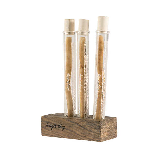 Tři přírodní zubní kartáčky sewak, známé také pod názvem miswak nebo meswak, se skleněnými pouzdry a dřevěným stojánkem plně uspokojí jak Váš chrup, tak design Vaší koupelny. Již několik tisíciletí sewak lidstvo užívá k dentální hygieně pro jeho dezinfekční, antibakteriální, čistící a vysoce bělící účinky. Jak je laboratorně prokázáno, sewak obsahuje fluoridy, vápník, vitamin C + dalších 16 aktivních látek, díky kterým získáte lésklé, bílé zuby, zdravé dásně, ochráníte zubní sklovinu a zabráníte vzniku kazů či usazování zubního kamene. Se skleněným pouzdrem Jungle Way, zdobeným květem života a dřevěným stojánkem, pro jehož výrobu jsou vybírány pouze vysoce kvalitní kusy světově ceněného dekorativního růžového dřeva z Indie, jej udržíte snadno čerstvý a naočích, aniž by docházelo k vysušení, ztrátě šťavnatosti či vláčnosti štětin.