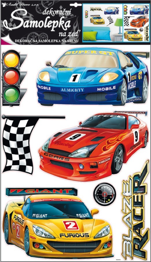 Tyto samolepky jsou ideální pro zdobení hladkých povrchů, jako jsou stěny, zrcadla nebo kachličky, a snadno je přenesete kamkoliv si přejete. Díky rozměrům 60x42 cm oživí každý kout vašeho domova nebo dětského pokoje a přitáhnou pozornost milovníků aut i závodění.