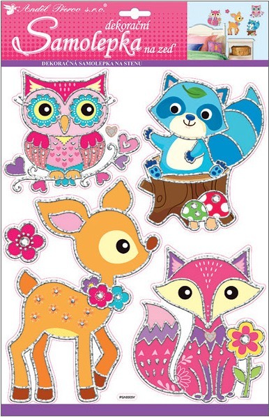 Samolepky na zeď zvířátka s hologram. konturou 42x28 cm