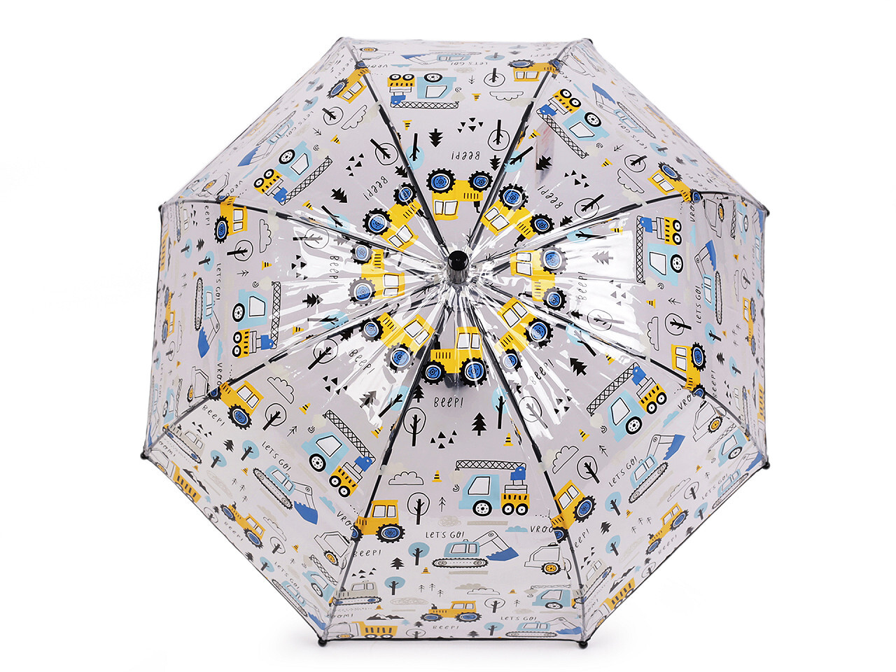 Tento dětský vystřelovací deštník je navržen s ohledem na bezpečnost i praktičnost. Jeho konstrukce obsahuje osm pružných lamel, které podpírají hluboký průhledný potah s veselým potiskem autíček. Deštník je dostatečně velký, aby zajistil ochranu před deštěm a zároveň umožnil dítěti vidět svět kolem sebe bez omezení.