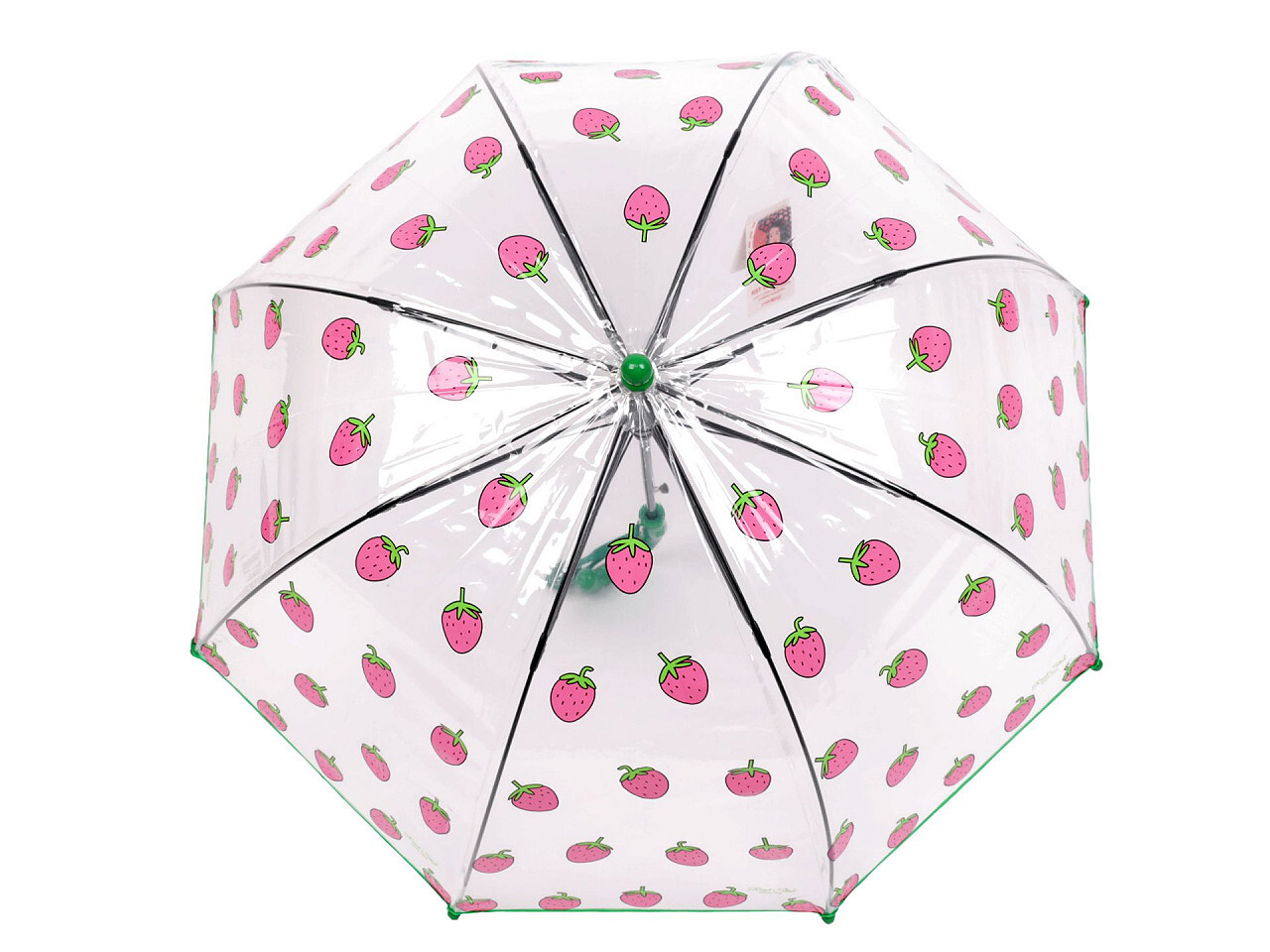 Dětský průhledný vystřelovací deštník jahoda - 1 ks - 3 zelená