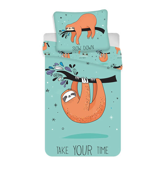Roztomilé a nápadité povlečení, které musí rozesmát snad každého. Na povlečení je motiv lenochoda, a tak se toto povlečení může stát skvělým dárkem pro někoho, komu se nechce ven z postele. Povlečení má klasický rozměr na jednolůžko a je vyrobeno ze 100% bavlny, což zaručuje kvalitní materiál. Povlečení za tuto cenu odpovídá kvalitě, jakou nabízí. Povlečení je oboustranné a na každé straně má jiný motiv.