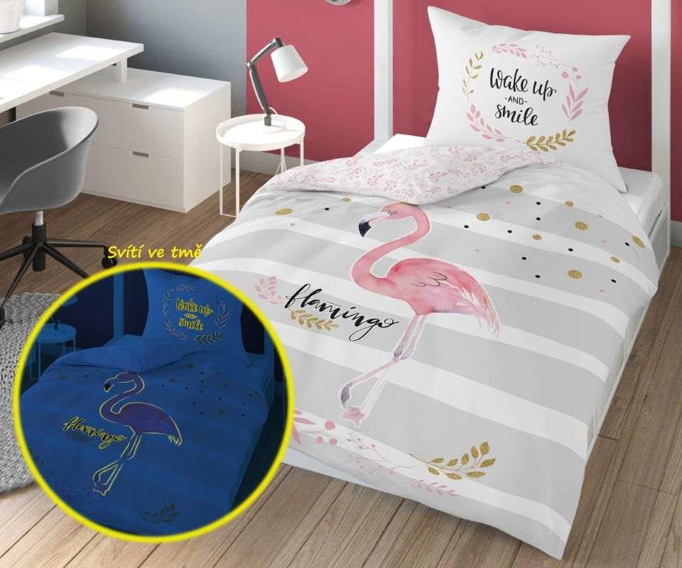 DETEXPOL Povlečení Plameňák svítící 140/200, 70/80