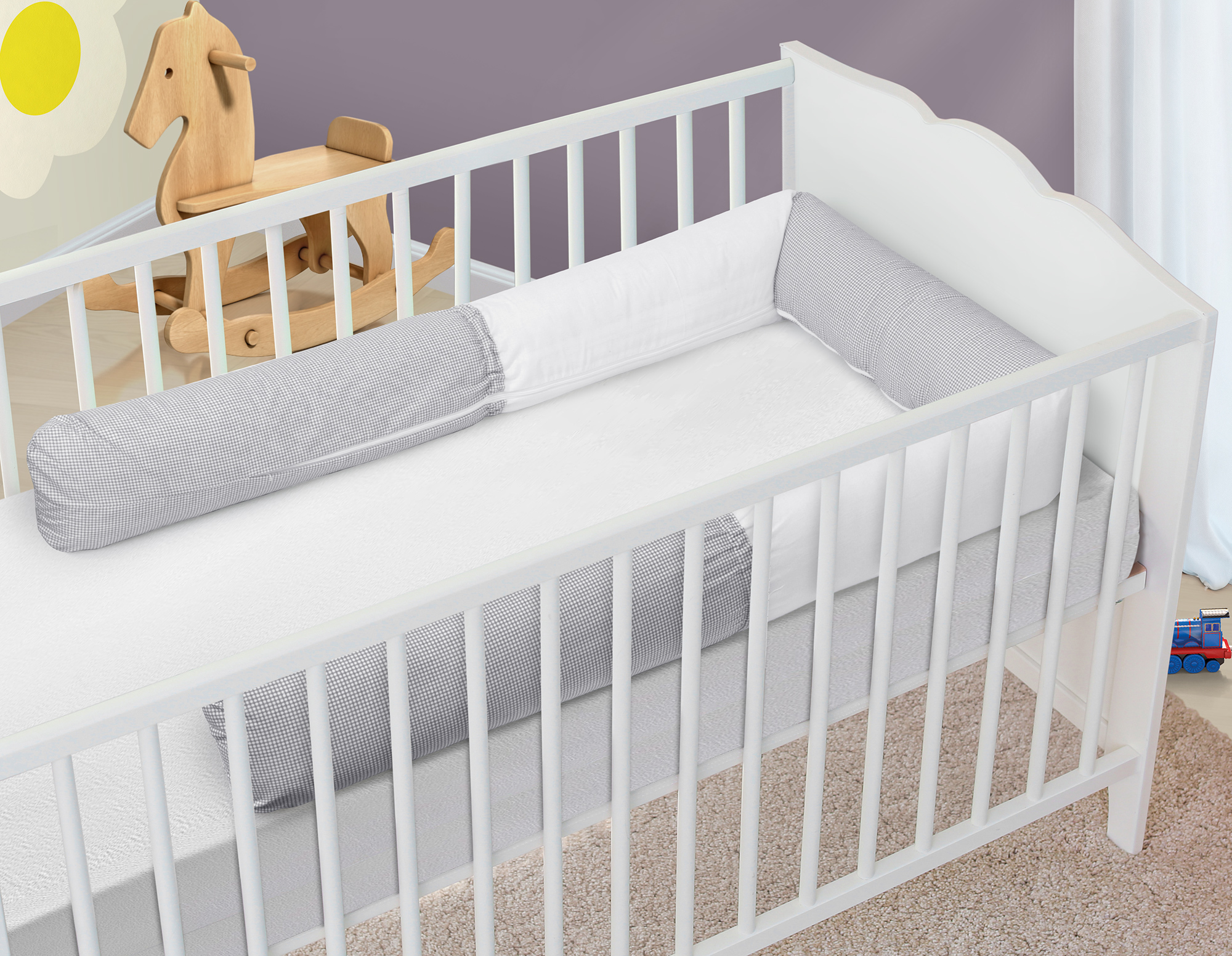 Mantinel do dětské postýlky - VÁLEC - kostička - šedá, bílá - průměr 12x240 cm
