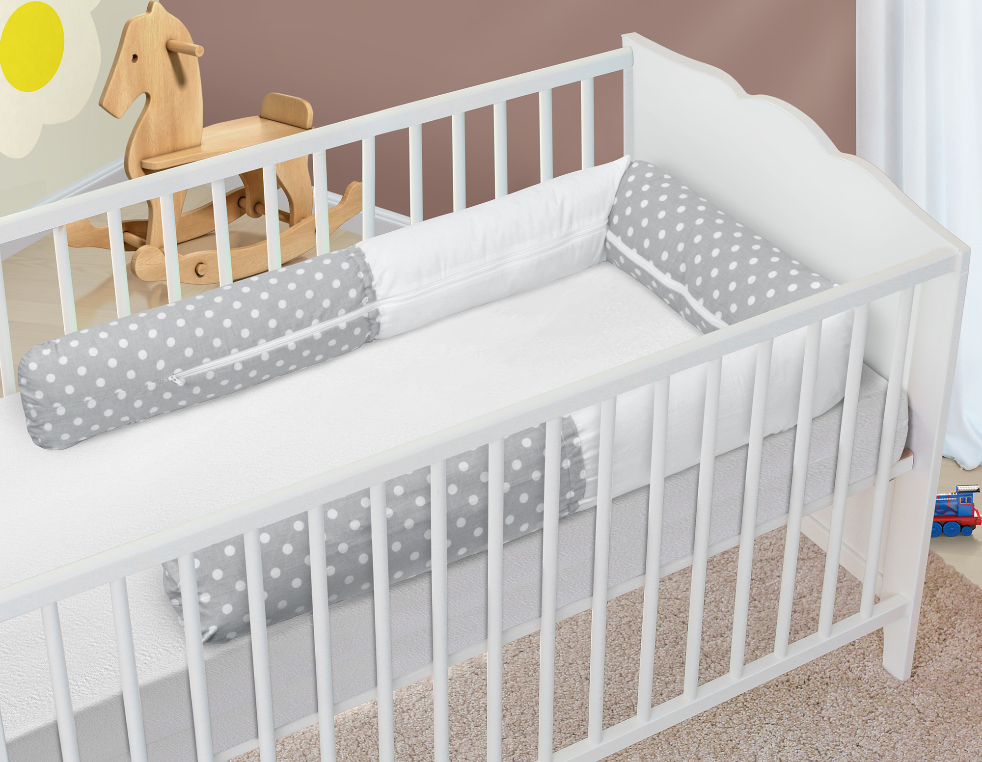 Mantinel do dětské postýlky - VÁLEC - puntík - šedá, bílá - průměr 12x240 cm