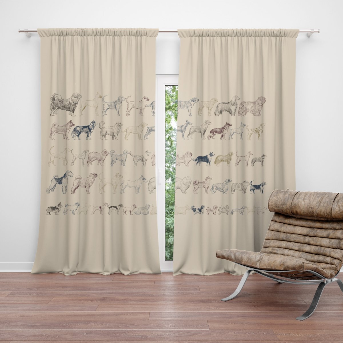 Závěs Psí plemena: 2ks 140x250cm
