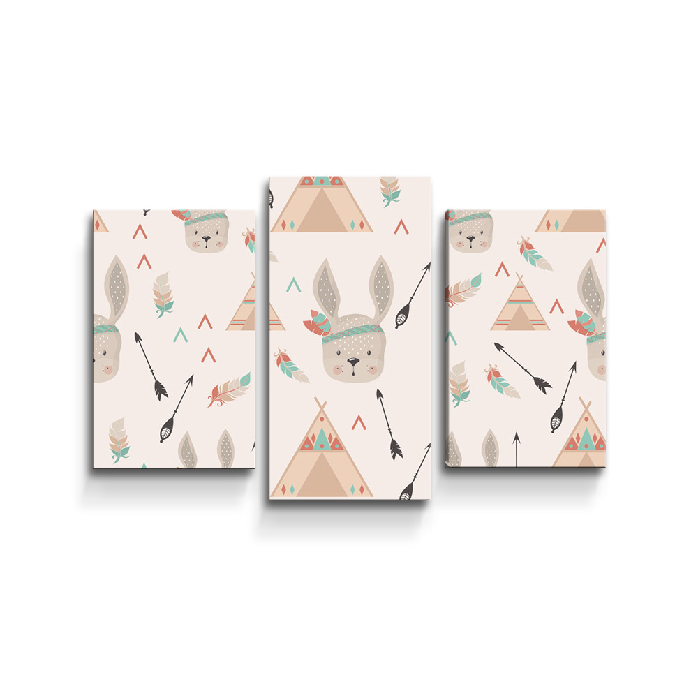Obraz - 3-dílný Zajíček indián: 75x50 cm