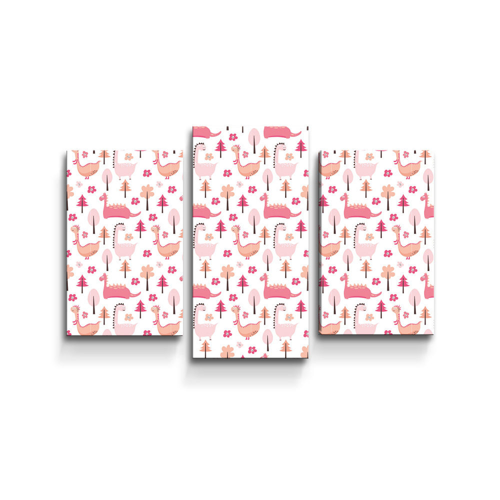 Obraz - 3-dílný Růžoví dinosauři: 75x50 cm