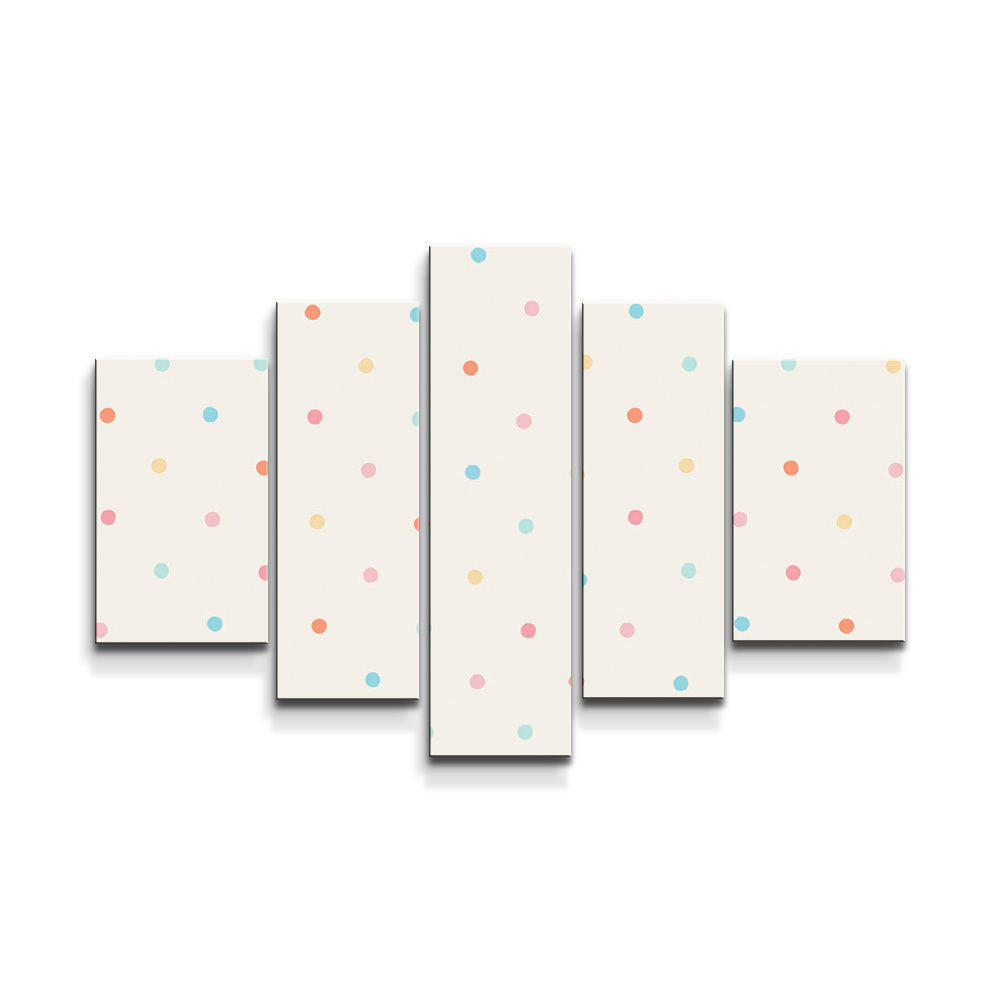 Obraz - 5-dílný Barevné tečky na béžové: 125x90 cm