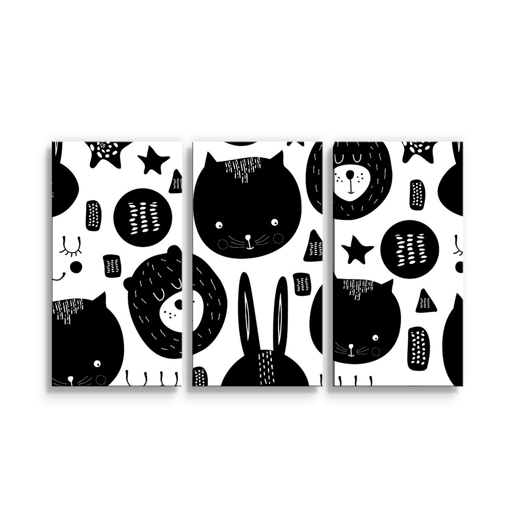Obraz - 3-dílný Kočička a medvěd: 120x80 cm