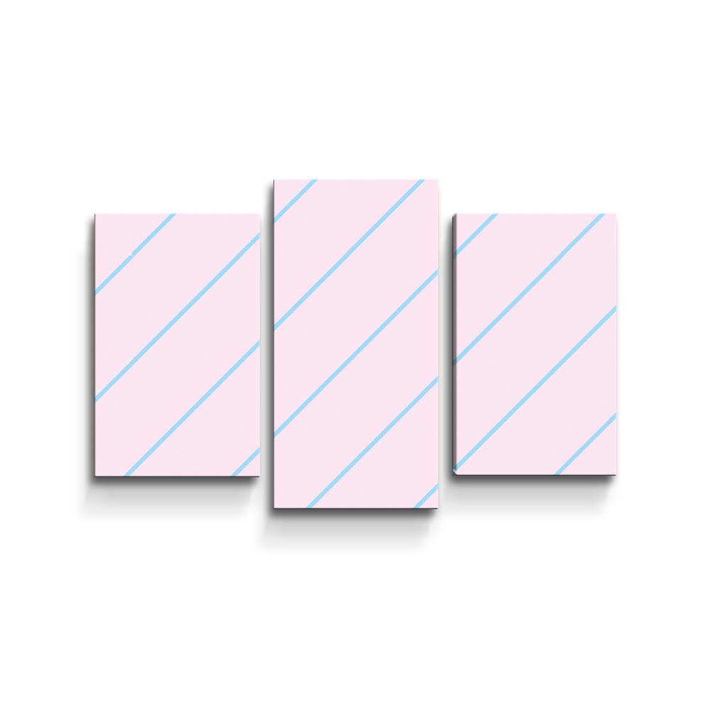 Obraz - 3-dílný Modré pruhy na růžové: 75x50 cm