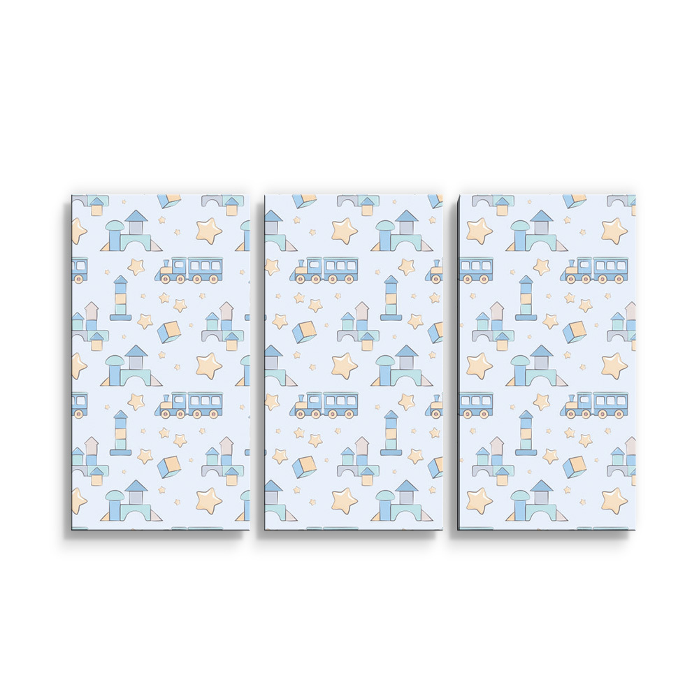 Obraz - 3-dílný Stavebnice a vláčky: 120x80 cm