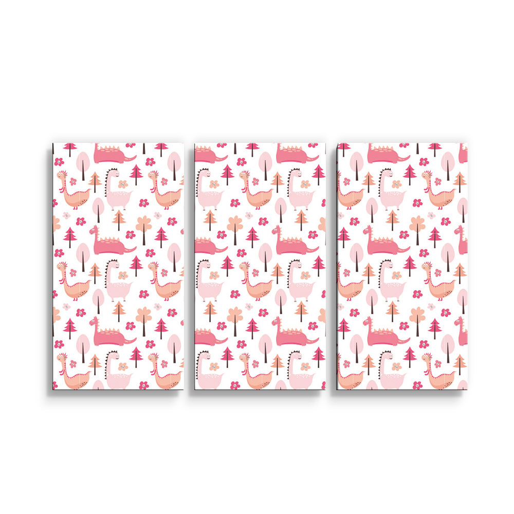 Obraz - 3-dílný Růžoví dinosauři: 120x80 cm