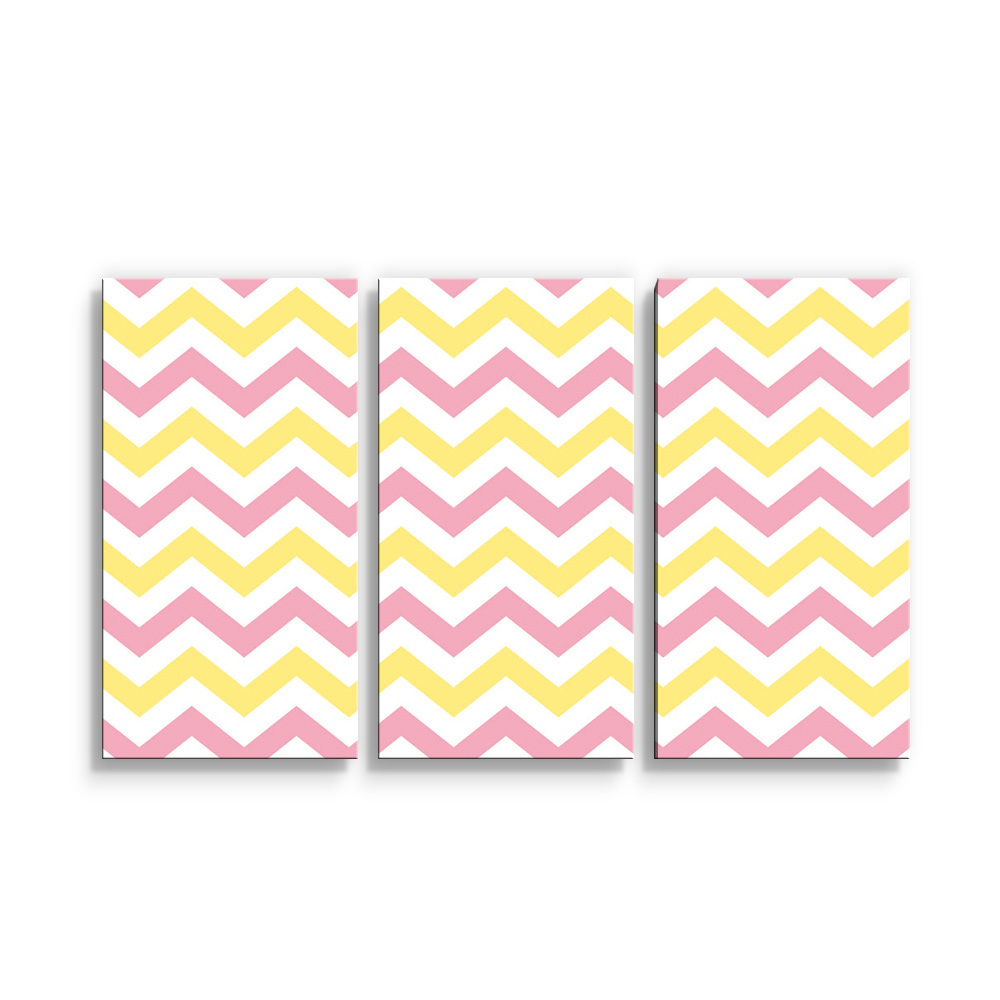 Obraz - 3-dílný Růžové a žluté klikyháky: 120x80 cm