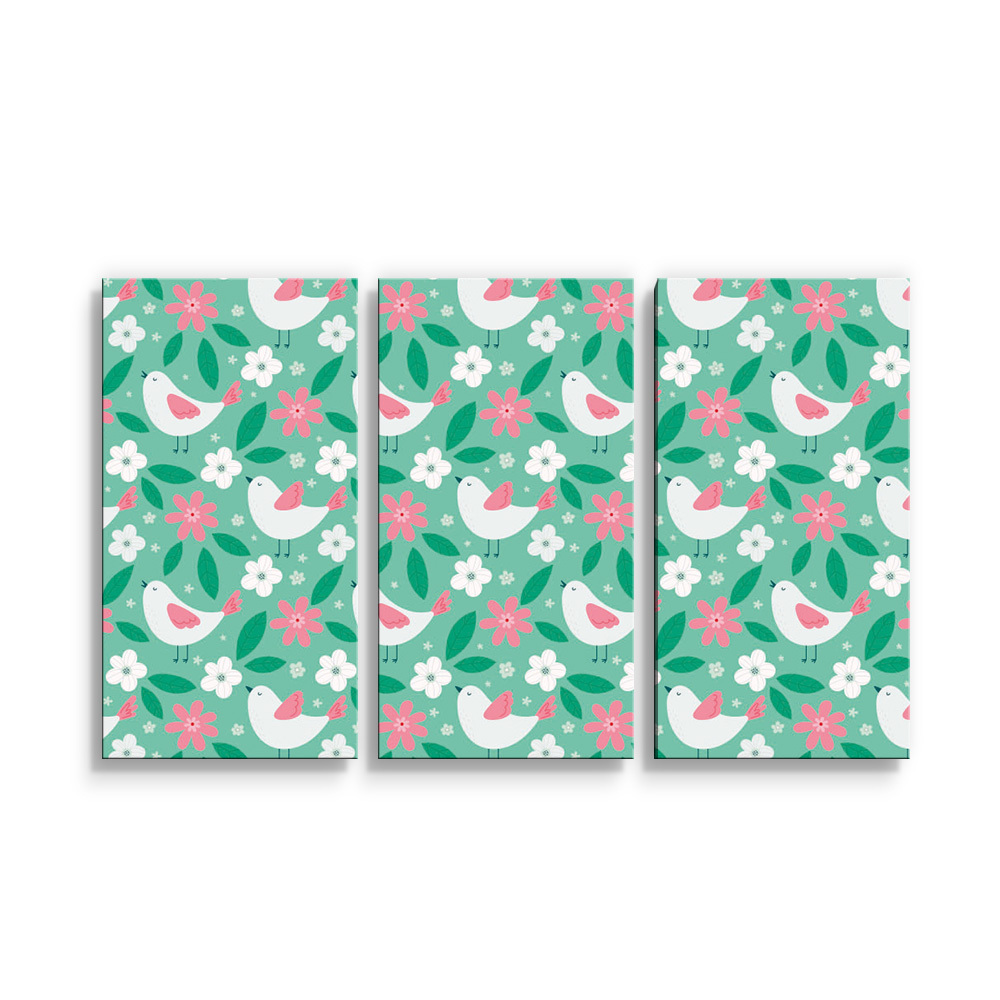 Obraz - 3-dílný Květiny a ptáčci: 120x80 cm