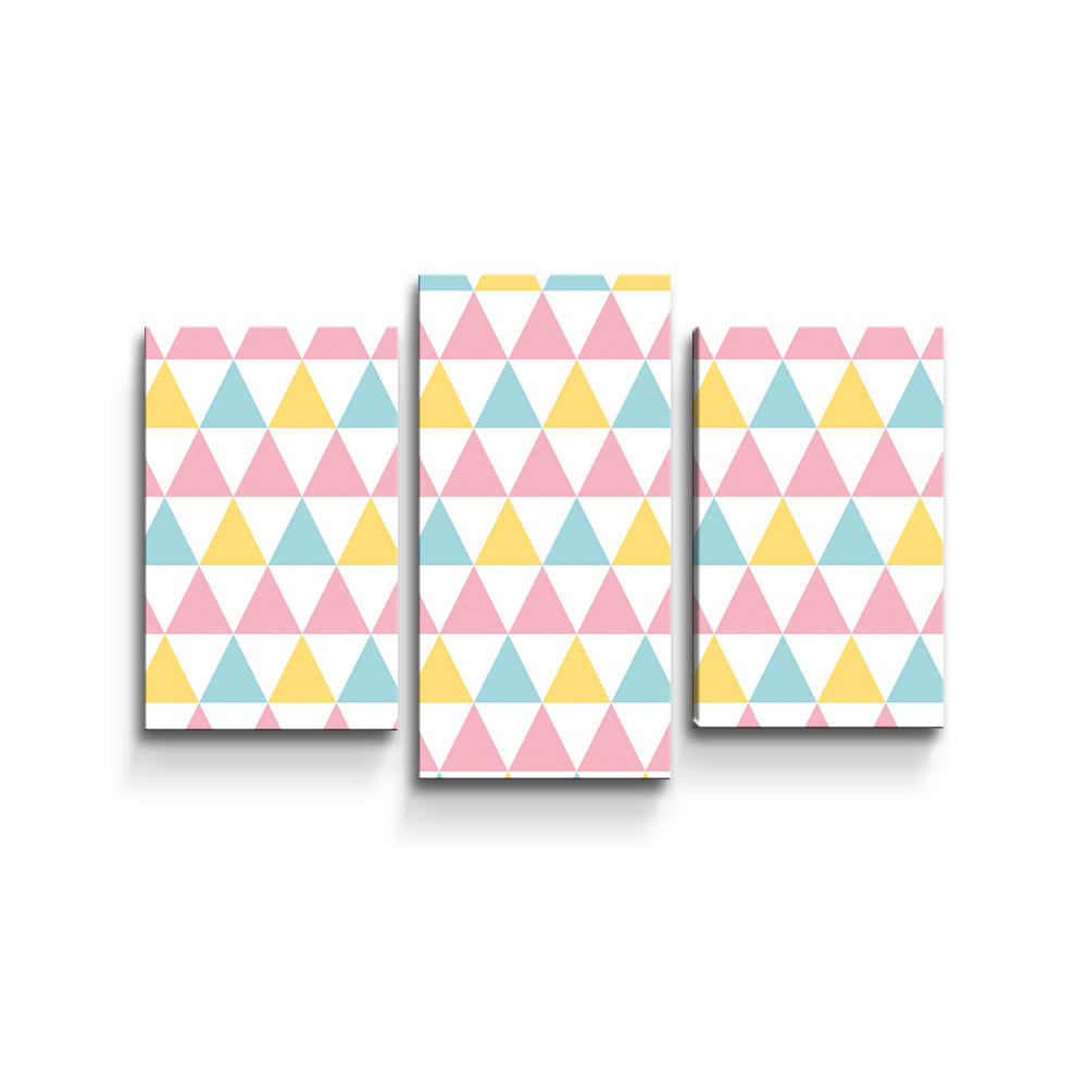 Obraz - 3-dílný Tříbarevné trojúhelníky: 75x50 cm