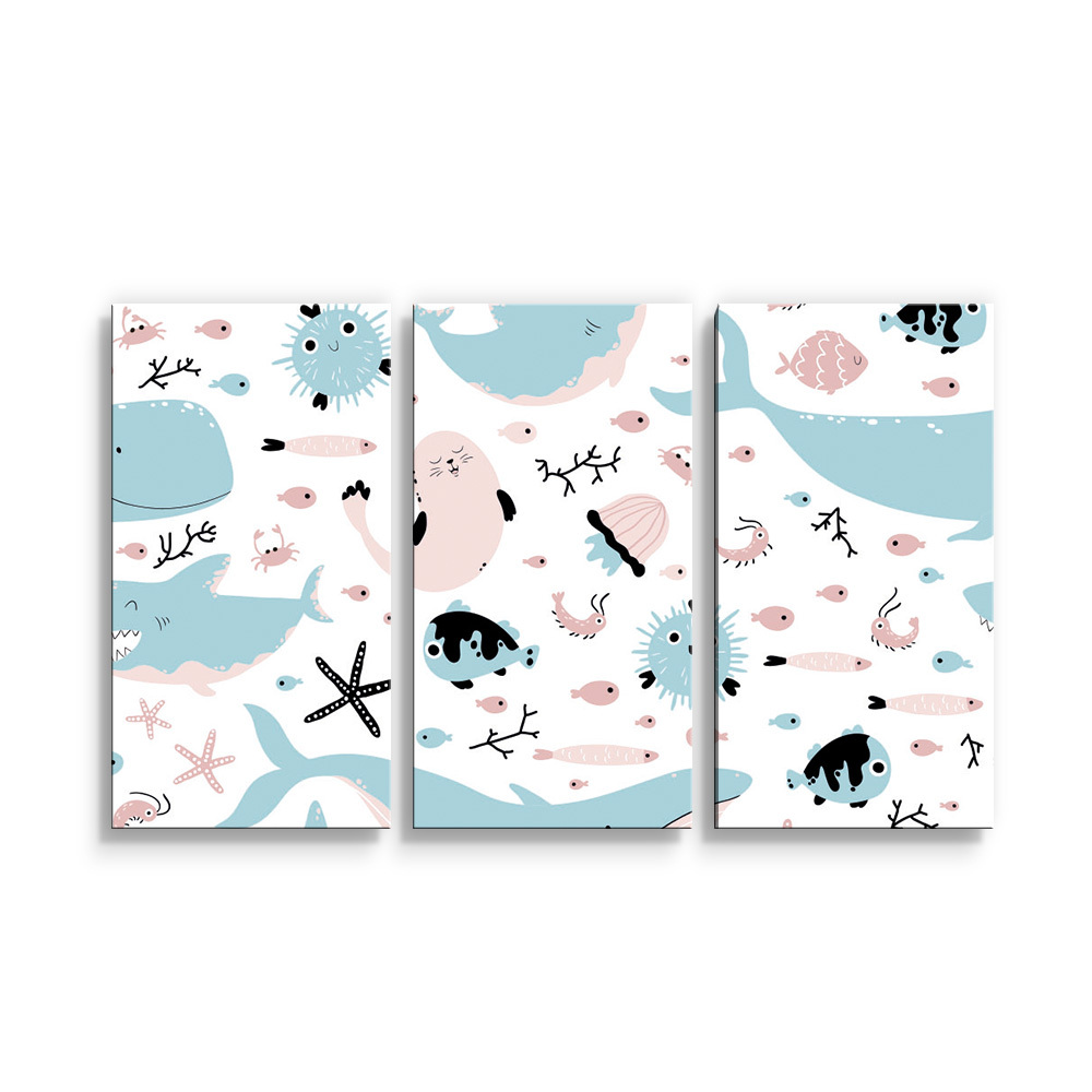 Obraz - 3-dílný Animovaný mořský svět: 120x80 cm