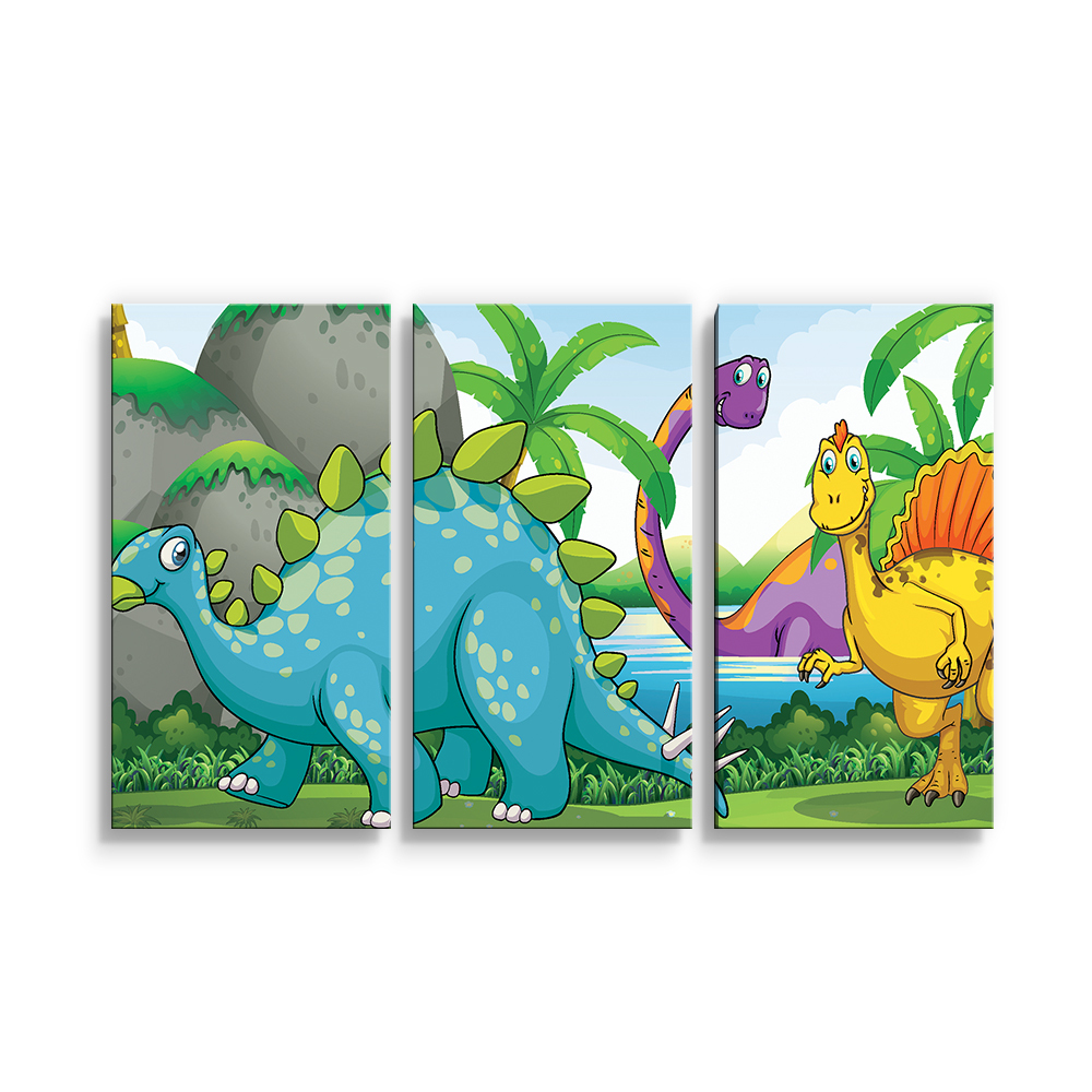 Obraz - 3-dílný Dinosauři 3: 120x80 cm