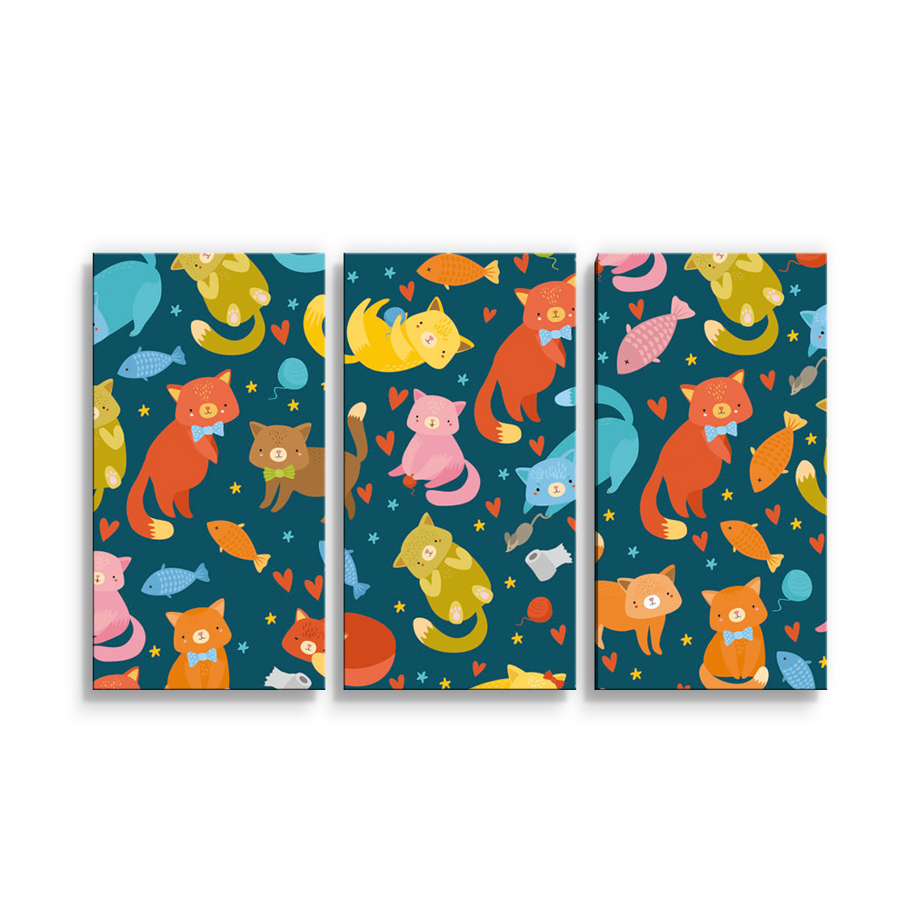 Obraz - 3-dílný Kočky s rybkami: 120x80 cm