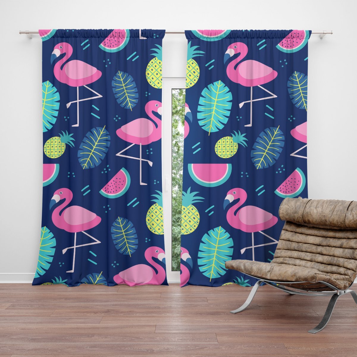 Závěs Růžoví plameňáci: 2ks 140x250cm